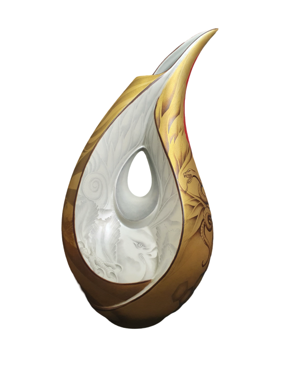 Attraverso il simbolismo cromatico (oro, argento, rosso, bianco e nero), l’artista trasmette una sensazione di mistero che vuole aprire a un messaggio di rivelazione, ovvero di Illuminazione spirituale e conoscenza, come via di libertà. Al centro, la luce, costante di Yuriko, che simboleggia l’idea di speranza e di bellezza, risplendente anche nelle tenebre.