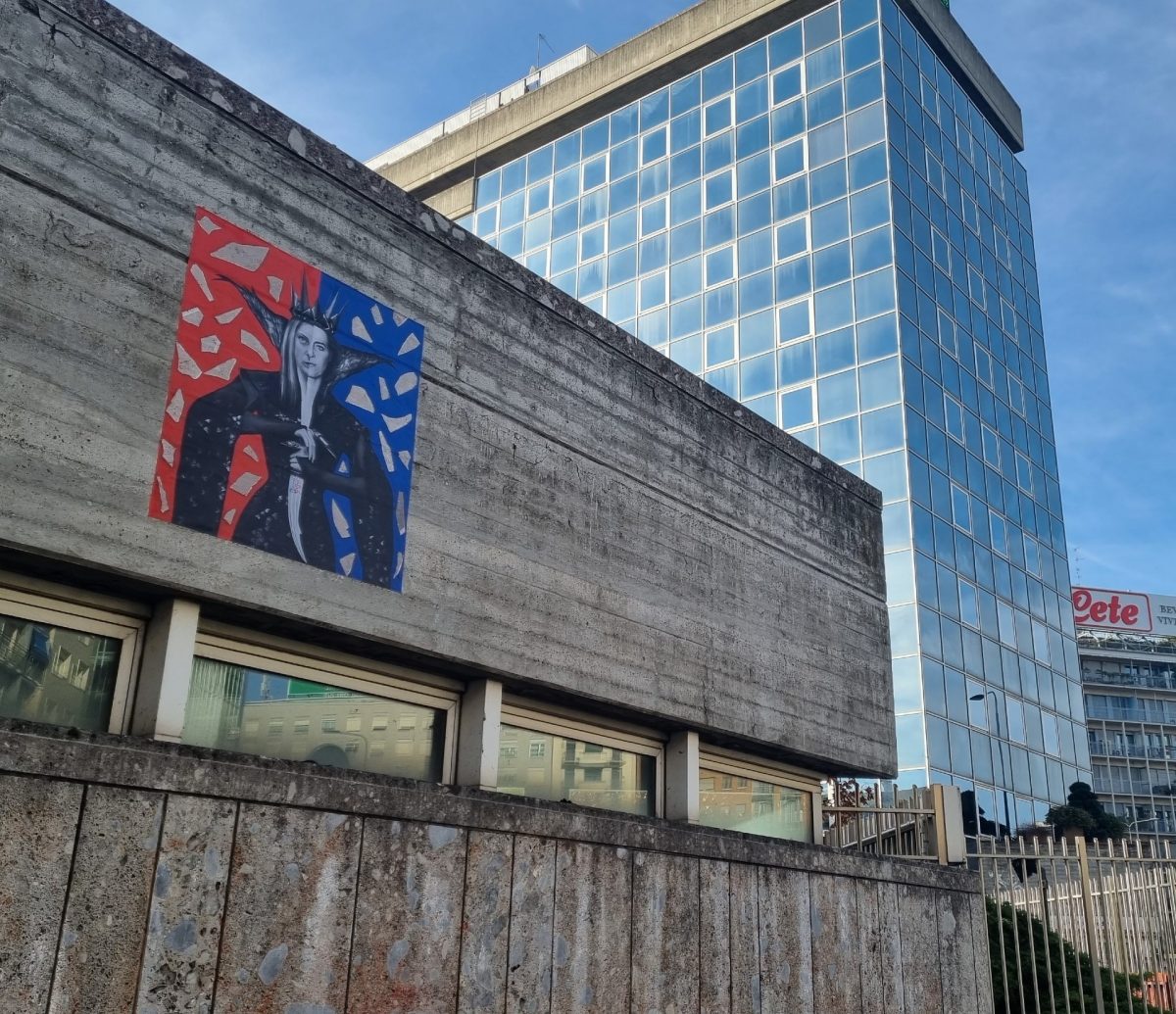 Tra i temi anche quello sulla violenza di genere, affrontato nell’opera contro la violenza sulla donna (in corrispondenza del muro della Fabbrica del Vapore”).