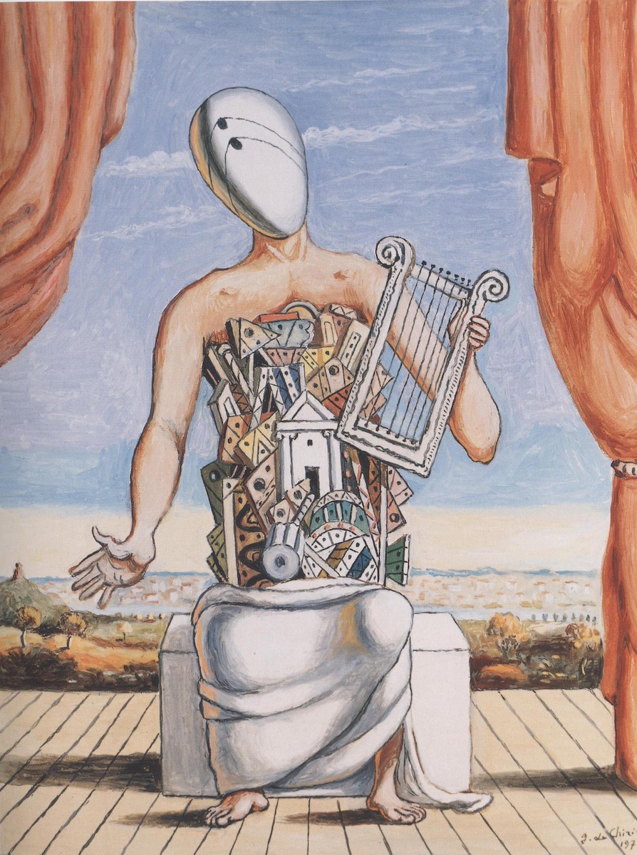 Al piano superiore, l’esposizione prosegue con il metafisico Orfeo (1973) di Giorgio de Chirico, parte della collezione permanente del museo. Ci sono poi l’enigmatico dipinto Verso il tempio di Salvatore Pulvirenti (1999) e L’angelo sotterraneo di Stefano Di Stasio, realizzato in occasione del Giubileo del 2000.
