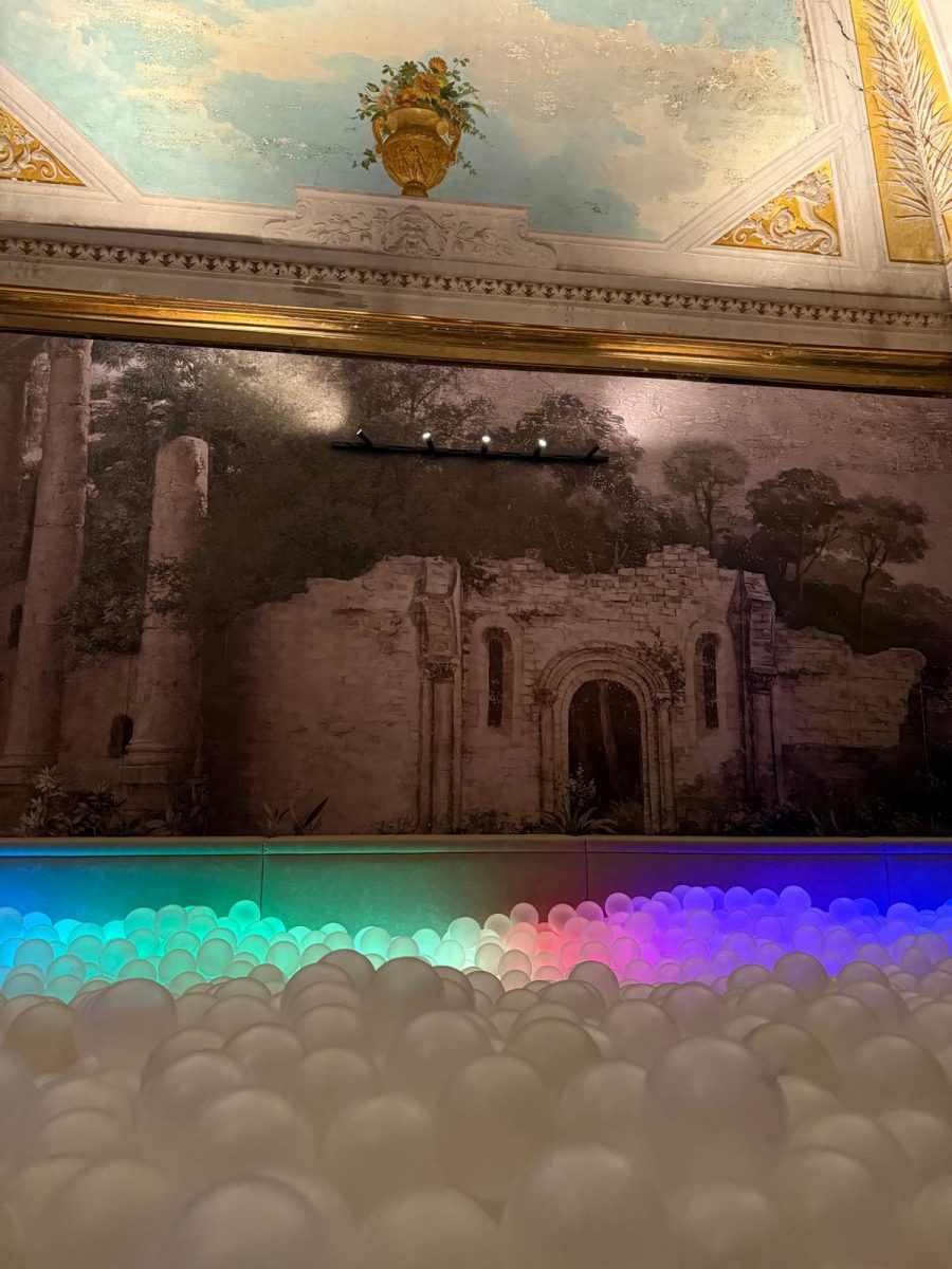 Dalla tradizione pop giapponese all’omaggio a Roma e alla sua impareggiabile storia. In una sala con soffitti affrescati troviamo una moderna vasca delle terme romane in cui l’acqua è sostituita da una marea di palline!
