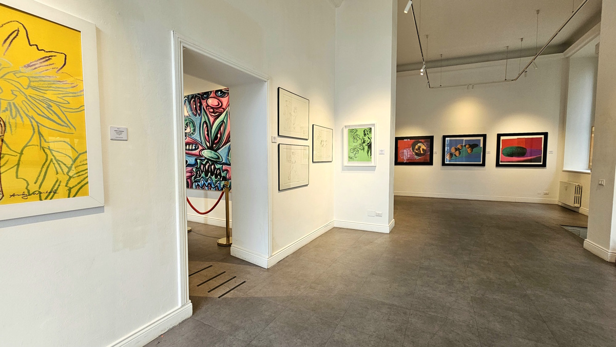 «Per Warhol abbiamo evitato i classici Flower o Marilyn, scegliendo opere su carta, collage, artist proof e soggetti meno immediati, come studi sulle pietre preziose e lavori più intimi. Pochi ricordano che Warhol fu anche uno dei primi artisti a lavorare in digitale: già nel 1985 sperimentava con il sistema Commodore Amiga, presentando opere digitali insieme a Debbie Harry. Ci sono poi le invitation cards che erano proprio delle cartoline che anche al giorno d’oggi si possono fare, che magari riprendevano la locandina della mostra o alcuni soggetti presenti in mostra.