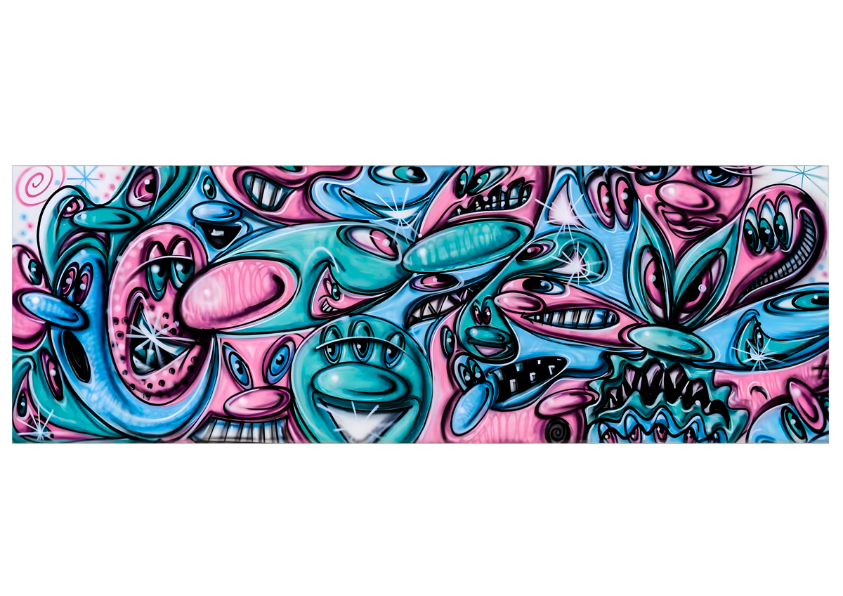 «Abbiamo voluto raccontare questi artisti in modo meno scontato, partendo da un’opera museale di Kenny Scharf alta cinque metri, realizzata nel 2022 per Tribeca in occasione di un premio alla carriera. Da lì è nato tutto: Scharf è uno degli ultimi testimoni viventi di quella stagione, accanto a Basquiat, Haring e Warhol, ed è riuscito anche lui a portare la sua arte fuori dai musei, fino a collaborazioni con Dior.
