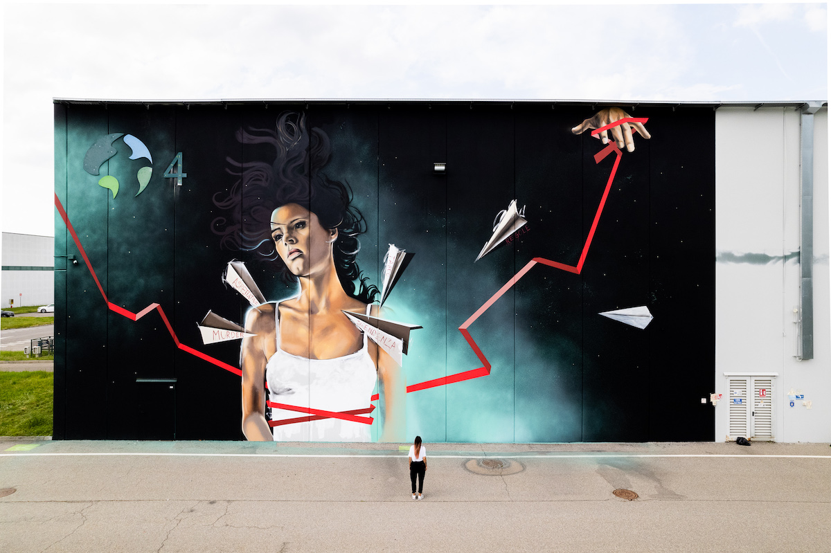 Stefania Marchetto non è nuova a questo genere di interventi artistici: cifra stilistica che caratterizza tutta la sua carriera, in un percorso professionale che si riflette in quello privato, è la raffigurazione – nelle sue opere murali e non – di donne valorose e carismatiche, donne importanti che hanno fatto la storia, lottando per i propri diritti. Un percorso personale, quello di SteReal, fatto di riscatto e affermazione femminile in una società nella quale la donna è spesso vittima di violenze e discriminazioni. Specchio della sua stessa storia, il murale realizzato per Prologis è un omaggio e una dedica all’essere donna nonché un invito a combattere per la propria affermazione.