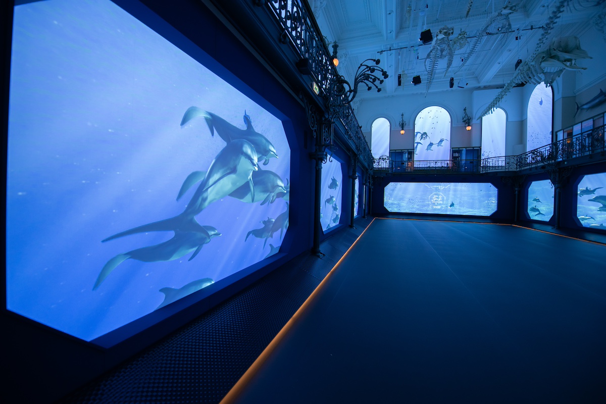Tutto merito di un sistema di proiezioni di 310 m² che mostra 30 specie iconiche — dalle tartarughe Caretta ai tonni, dai delfini ai capodogli — immerse in un ambiente in equilibrio. Le simulazioni ultra-realistiche fanno vivere un Mediterraneo rigenerato, risultato di politiche efficaci e protezione reale.