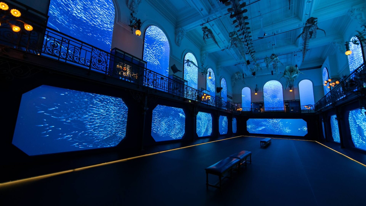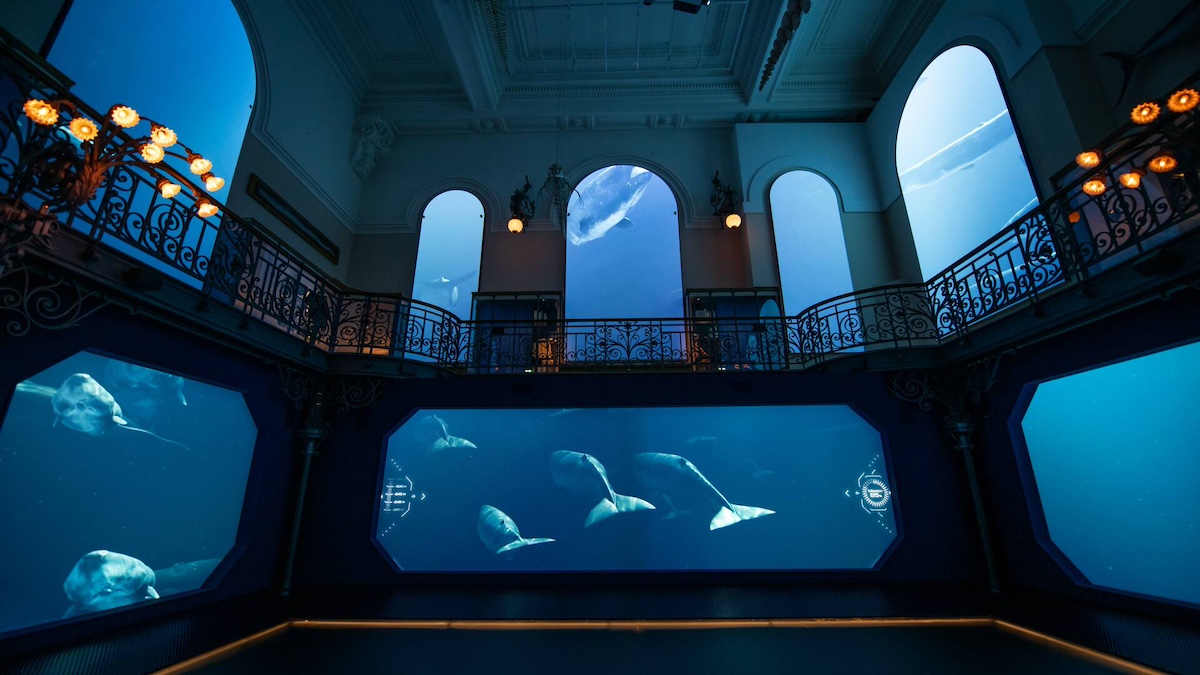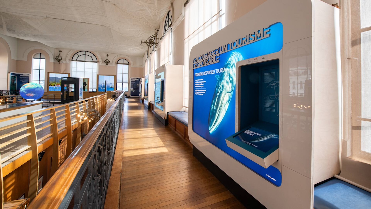 L’esperienza espositiva è strutturata come un viaggio attraverso quattro grandi ambienti, guidato da un narratore d’eccezione: i cetacei, simbolo della biodiversità mediterranea. Nella cornice del meraviglioso Museo Oceanografico del Principato di Monaco, la mostra Mediterraneo 2050 appare come una continuazione dello storytelling del Museo stesso, che parte dal passato per mostrarci il futuro.