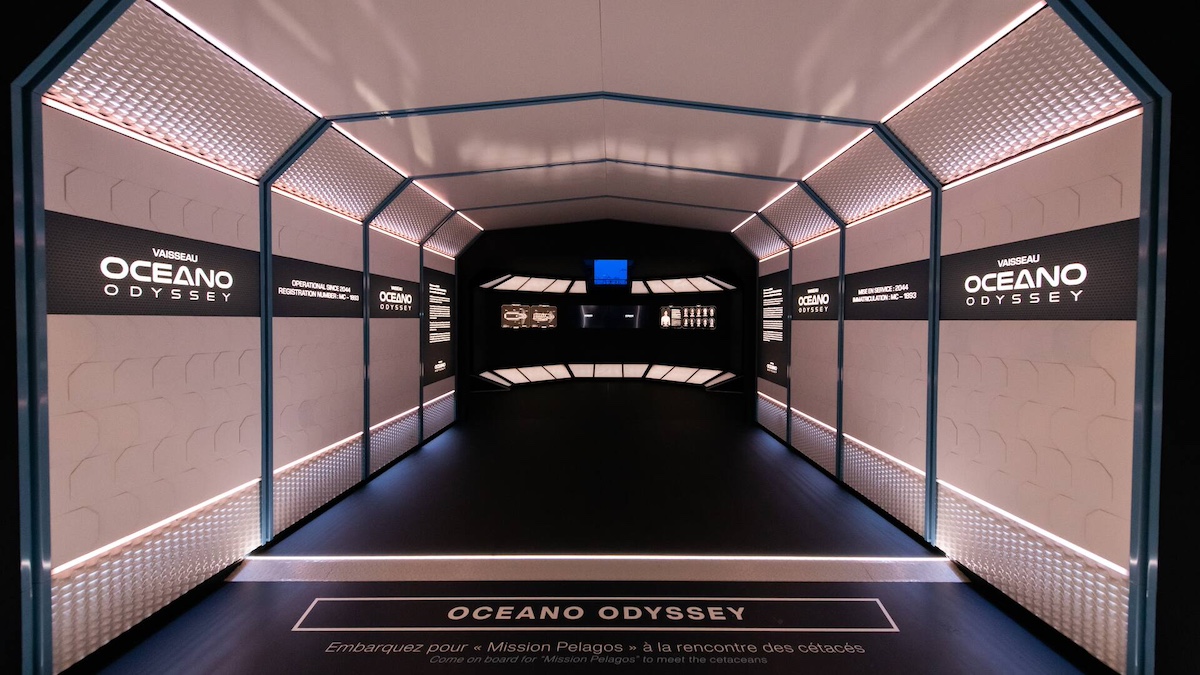 La parte centrale dell’esposizione è un viaggio multisensoriale nel futuro. A bordo di un sommergibile virtuale, il pubblico entra nel Santuario Pelagos nel 2050, immaginato come una grande Area Marina Protetta restituita alla vita. È un’esperienza immersiva dall’impatto fortissimo, con tanto di personaggi (Anita, Capitano della Oceano Odyssey e la sua crew): la realizzazione è eccellente, vi sembrerà realmente di trovarvi in un sottomarino.