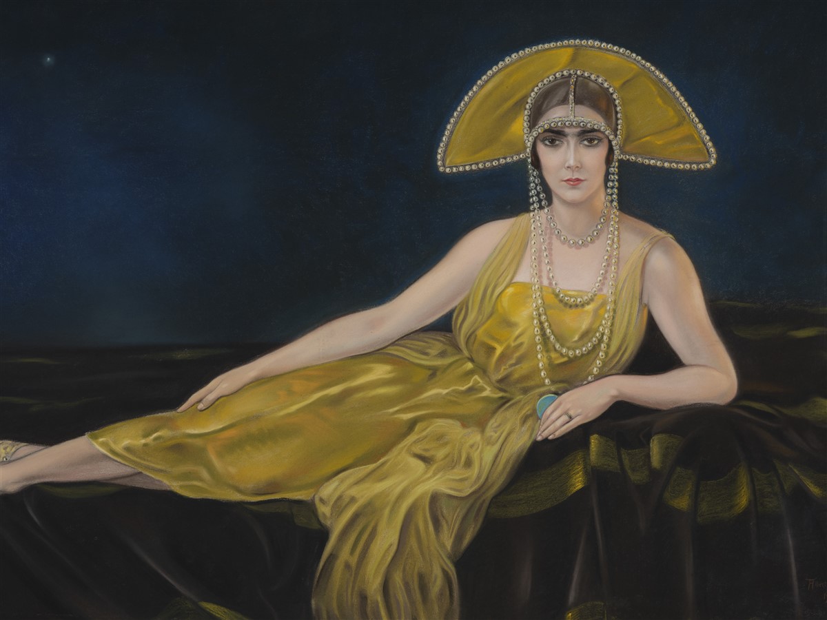 “Lei, Wally, sarà al Museo Santa Caterina nel magnifico, potente ritratto che le ha dedicato Alberto Martini, opera considerata tra i capolavori italiani del Deco. Si tratta di un grande pastello alto 131 centimetri e largo 204, è del 1925. Lei vi compare nel vestito da ballo di seta gialla indossato per una serata mondana in Casa Visconti. Lui la ritrae sdraiata su un raffinato divano, il volto incorniciato da un curioso copricapo, 4 fili di perle. Bellissima, altera, una dea sicura della propria bellezza e del suo potere sugli uomini”.