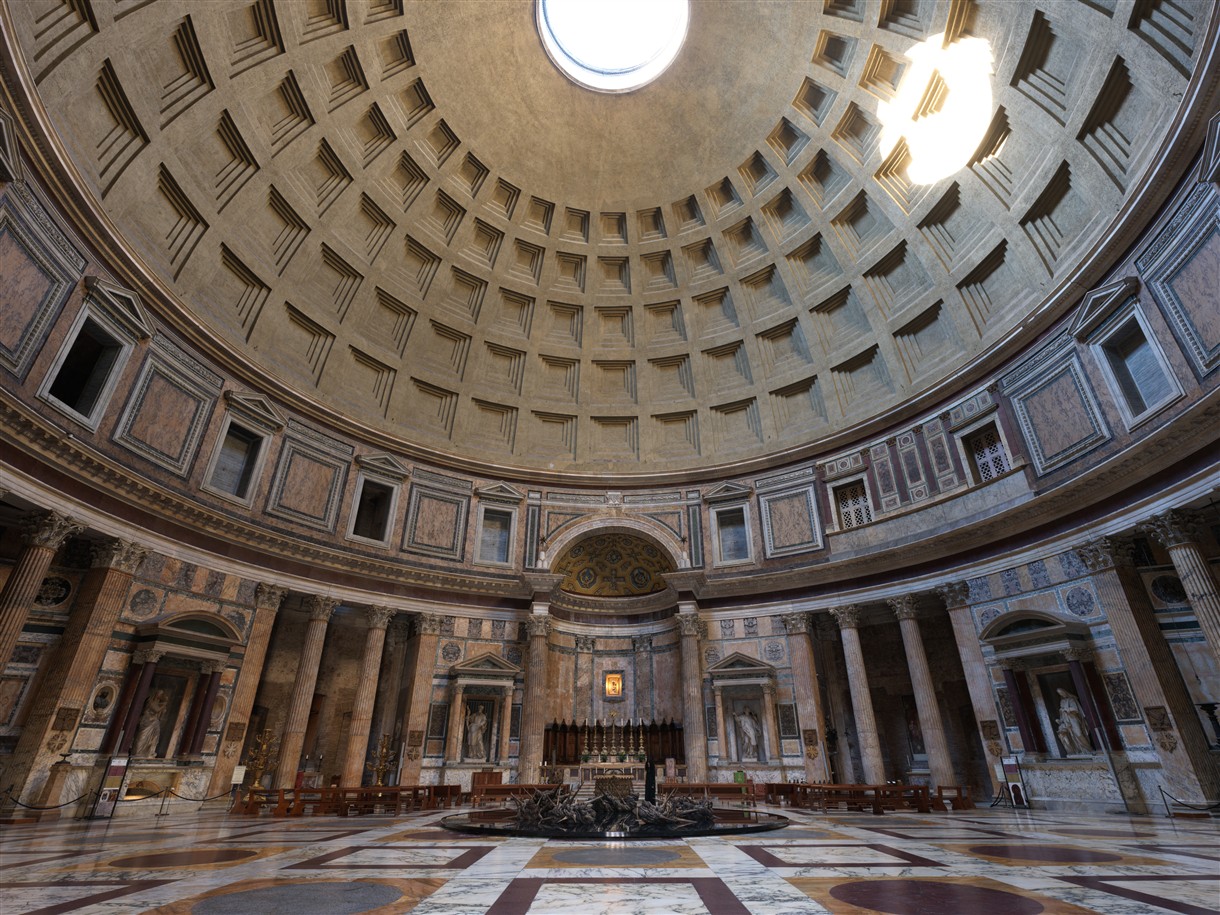D’altronde lo stesso Pantheon, con la sua maestosa cupola in cemento e con il suo oculus di 9 metri, rappresenta un collegamento diretto tra il cielo e la terra. Un’apertura da dove non entra l’acqua quando piove. Non per magia, come si pensava un tempo, ma grazie alla fisica.