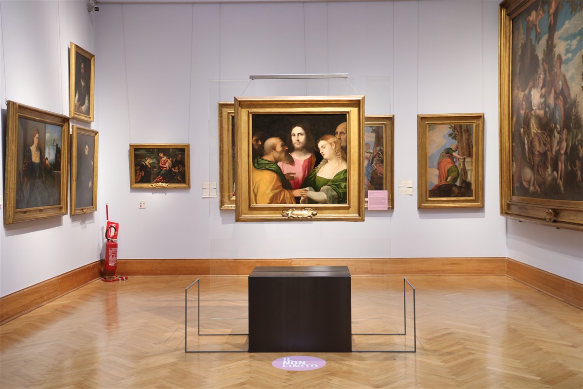 Il cuore teorico della mostra emerge nella Sala III con Cristo e l’adultera di Jacopo Palma il Vecchio. Qui il non finito si intreccia con la riscrittura del significato: l’opera, rimasta incompiuta alla morte dell’artista, è stata parzialmente ridipinta in epoca successiva. Le analisi scientifiche mostrano chiaramente le modifiche allo sguardo dell’adultera, ai capelli, alla posizione della mano di Cristo.
