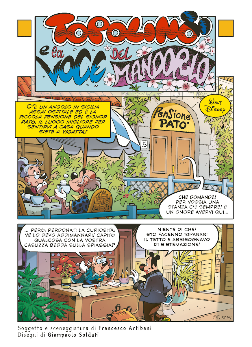 Il primo appuntamento è sulle pagine di Topolino n. 3640, in edicola e su Panini.it da mercoledì 27 agosto, dove tornano le avventure di Topalbano con la storia inedita Topolino e la voce del mandorlo. Scritta da Francesco Artibani e illustrata da Giampaolo Soldati, l’avventura mescola azione, gioco di squadra e amore per le tradizioni, restituendo fin dalle prime tavole le atmosfere tipiche dei romanzi camilleriani.