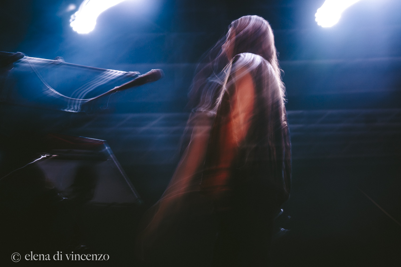 A fermare quei momenti è stato l’occhio esperto di Elena Di Vincenzo, fotografa che da anni documenta la scena musicale italiana e internazionale con un approccio capace di fondere precisione tecnica e sensibilità artistica. Le sue immagini non sono semplici scatti: diventano ritratti narrativi, istantanee che restituiscono l’essenza di un live, la relazione tra artista e pubblico, i dettagli che spesso sfuggono allo sguardo comune.