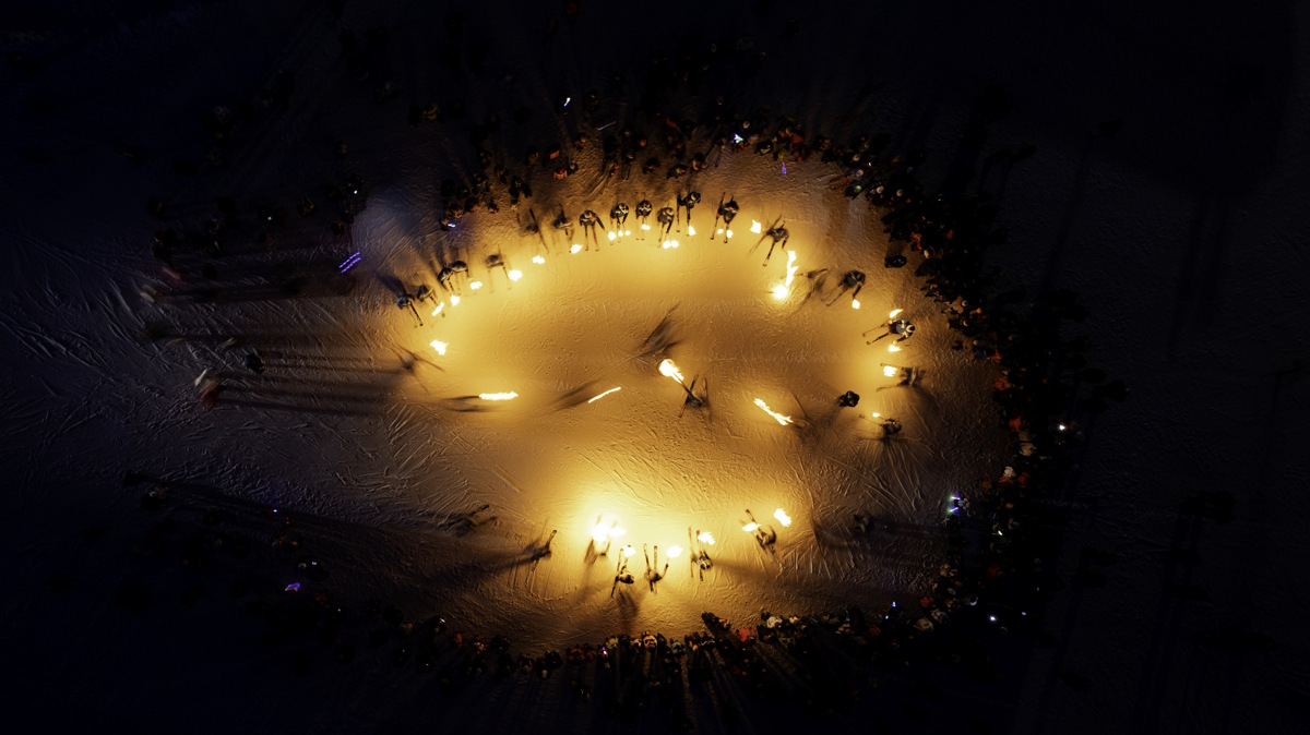“Sono innamorato delle storie italiane – confida ancora Di Cera – e negli ultimi anni, proprio con Sospesi, ho raccontato molte tradizioni del nostro Paese. Quella delle fiaccolate di Capodanno in montagna è una di queste: si tratta di un’usanza molto nostra, molto italiana, diffusa lungo tutto l’arco alpino. Poi c’è il Palio Marinaro dell’Argentario, una tradizione secolare nata dalla necessità di fuggire via mare all’arrivo dei corsari. Questa energia, questa forza della fuga è diventata una competizione tra rioni, e fotografarla dall’alto cambia completamente la prospettiva. La scena sembra quella di anime dannate che assalgono la barca di Caronte e la affondano”.