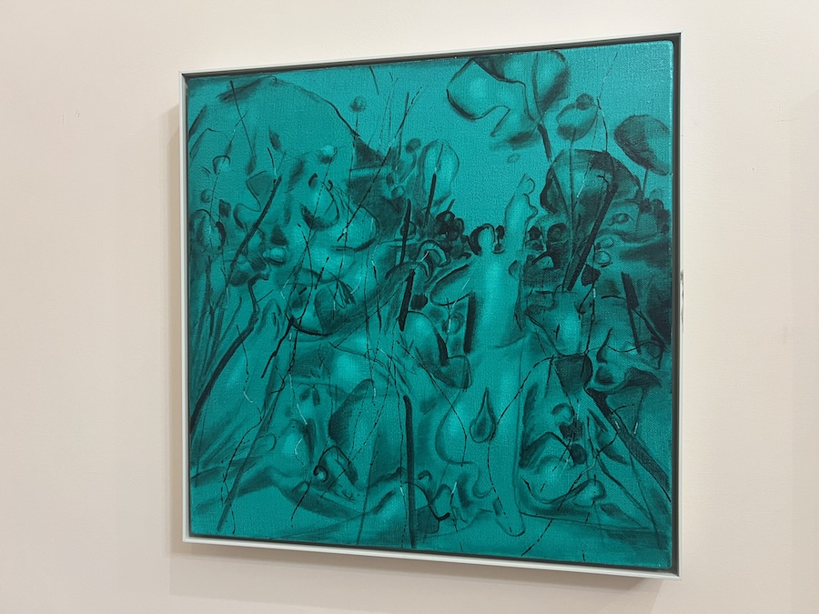 Nelle sue opere, astrazione e figurazione si mescolano in armonia, creando equilibrio tra la raffinatezza simbolica dell’arte orientale e la leggibilità del linguaggio contemporaneo. Tra le opere in mostra spiccano i fiori di loto, motivo ricorrente che diventa metafora visiva e filosofica.