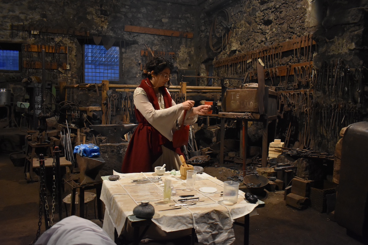 La bottega di Giulia, nella via principale di Bienno, è ricca di disegni e di strumenti scientifici. Un’arte unica nel suo genere che – come sottolinea l’artista – richiede tempo e precisione. «Ho iniziato a lavorare sull’arte scientifica perché sono laureata in chimica e tecnologia farmaceutica. In seguito, mi sono iscritta in Accademia. Ho quindi cercato di combinare questi due mondi con lavori con inchiostri termocromici e indicatori di Ph».