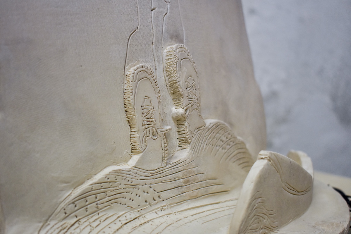 Originariamente pittrice, Laura ha poi sfruttato il suo tempo a Bienno per dedicarsi finalmente alla scultura. «Ho iniziato a lavorare con la ceramica due anni fa ed è difficile bilanciare i due elementi. – dice – Non ho uno studio di argilla nel mio studio a New York, quindi devo andare fuori e programmare qualche ora. Ho colto questo momento qui a Bienno per immergermi nella scultura, così che fosse l’unico mezzo con cui lavorare qui. Lo sogno persino! Mi sveglio la mattina prima di aprire gli occhi e mi immagino a disegnare in questa argilla. Ora sono in grado di portare tutte le tecniche che uso nella mia pittura nel disegno, nella xilografia e applicarlo all’argilla».
