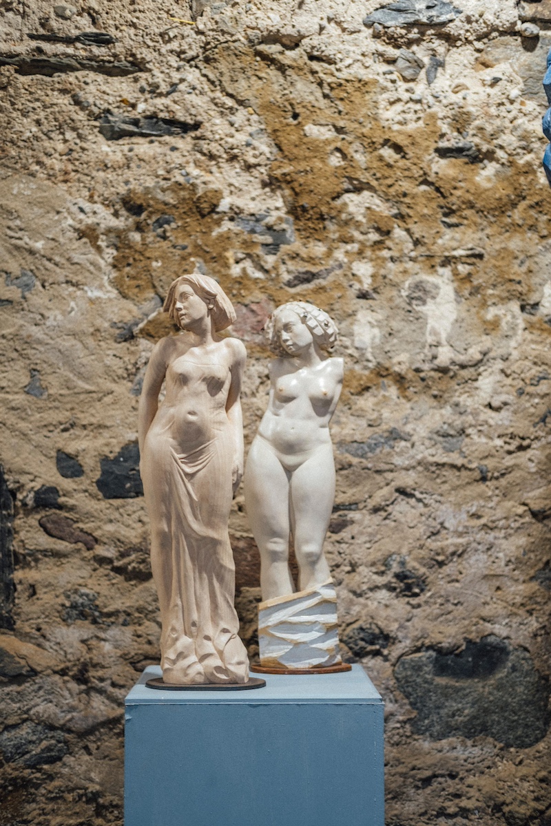 Di artigianato Tomaso Vezzoli è un vero esperto, ma nel borgo e nel Palazzo Simoni Fè abbia avuto anche modo di ammirare le sue sculture. «In armeria ho attinto dalle fucine – ci spiega – perché per fare alcune mie sculture sono partito proprio dall’oggetto che usciva dalle fucine. Per esempio, il badile. Se osservate la sua forma, noterete che quella nervatura centrale la metto nelle mie figure. In questo modo ho sviluppato una figura lunga e piatta, perché il badile è fatto così».