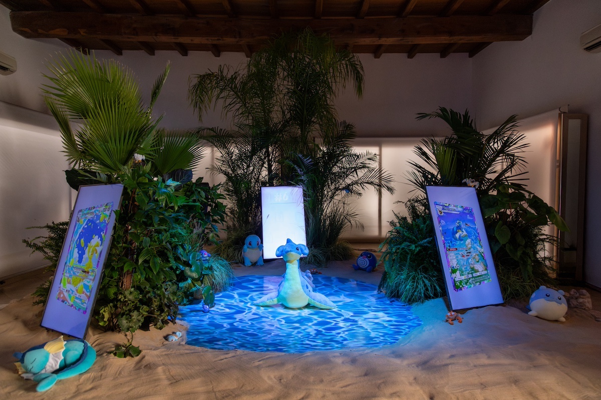 Due piani e varie stanze interamente dedicati al GCC Pokémon Pocket, tra illustrazioni delle carte disponibili e i tre habitat naturali fedelmente riprodotti (spiaggia, deserto e prateria). Il tutto da esplorare divertendosi grazie a una caccia al tesoro e all’opportunità di fotografare le illustrazioni delle buste di espansione. Ad arricchire l’esposizione anche una rassegna di considerazioni di artisti famosi del GCC Pokémon sulle illustrazioni da loro realizzate per le carte nell’app.