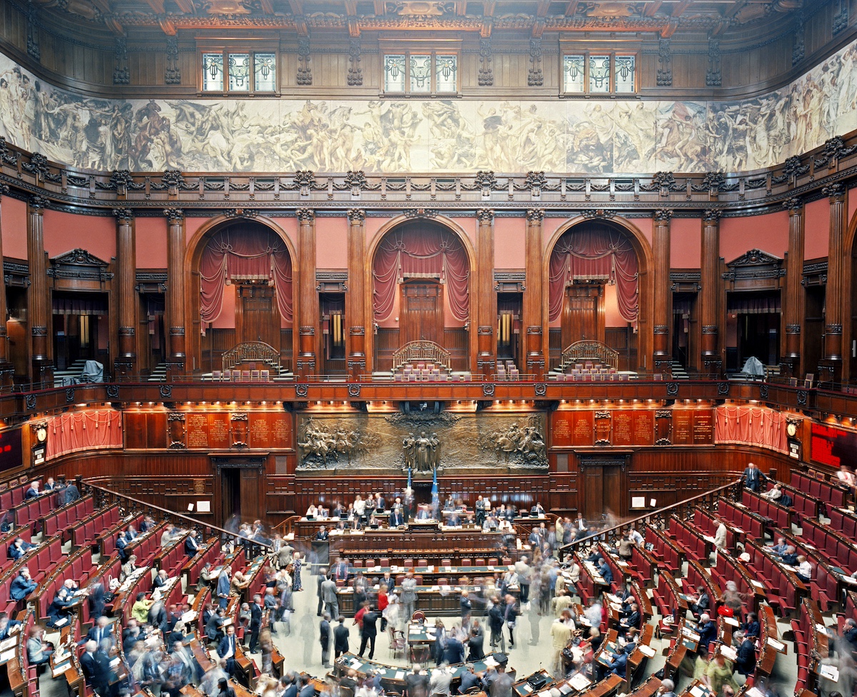 «Sono immagini della Costituzione italiana di 12 anni fa. Un progetto fatto per e con il MAXXI: abbiamo identificato i luoghi e le istituzioni elencati nella Costituzione italiana e poi, sistematicamente, per un anno e mezzo li abbiamo fotografati. Qui c’è Montecitorio e un dipinto di Sartorio con una giovanissima Italia: una specie di TikTok del 1812».