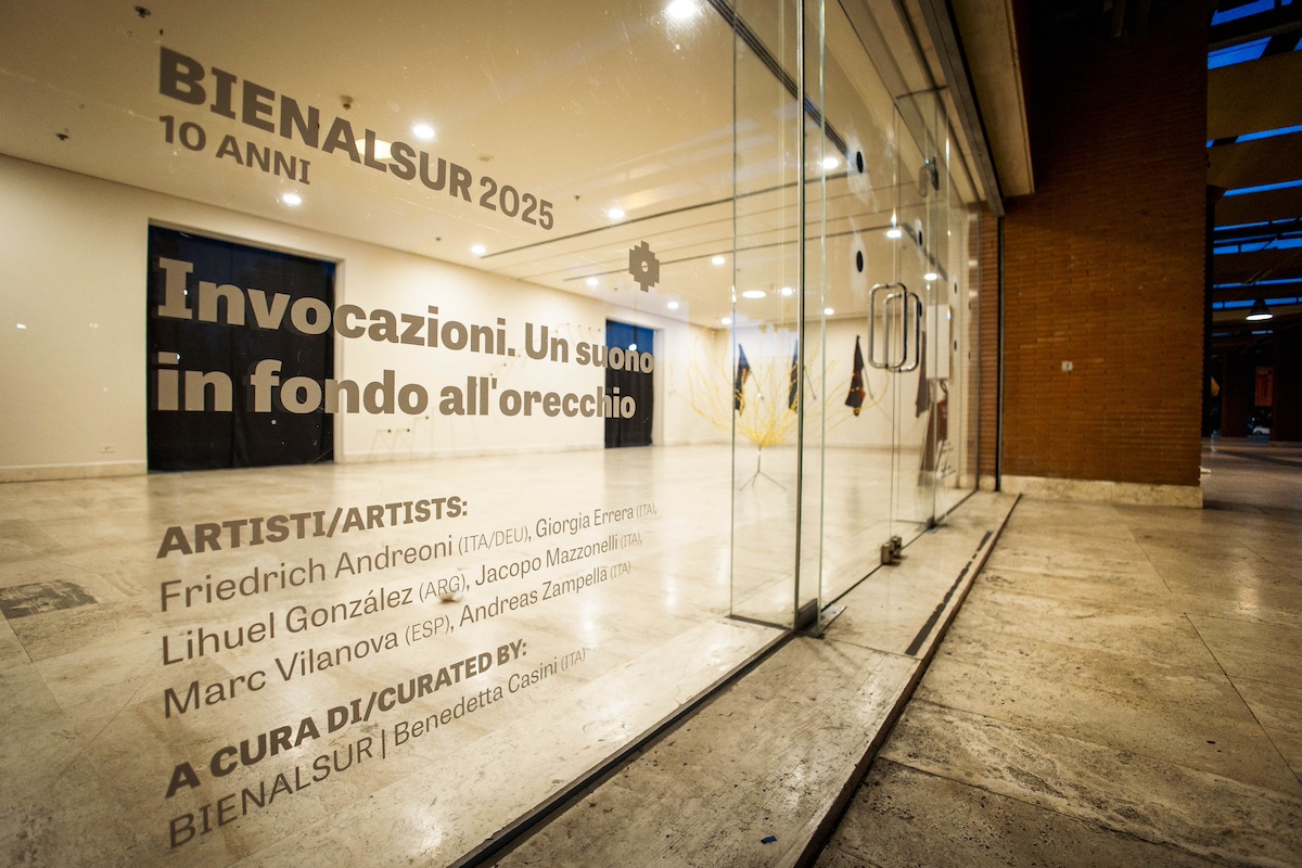 In occasione dell’approdo a Roma di BIENALSUR – Biennale Internazionale d’Arte Contemporanea del Sud – il tema Invocazioni (scelto dalla curatrice Benedetta Casini) arriva anche all’Auditorium Parco della Musica Ennio Morricone con la mostra Invocazioni. Un suono in fondo all’orecchio. Dal 14 novembre al 6 gennaio cinque artisti – Marc Vilanova (ESP), Lihuel Gonzalez (ARG), Jacopo Mazzonelli (ITA), Friedrich Andreoni (ITA/DEU), Giorgia Errera (ITA) – indagano il limite tra linguaggio visivo e sonoro.