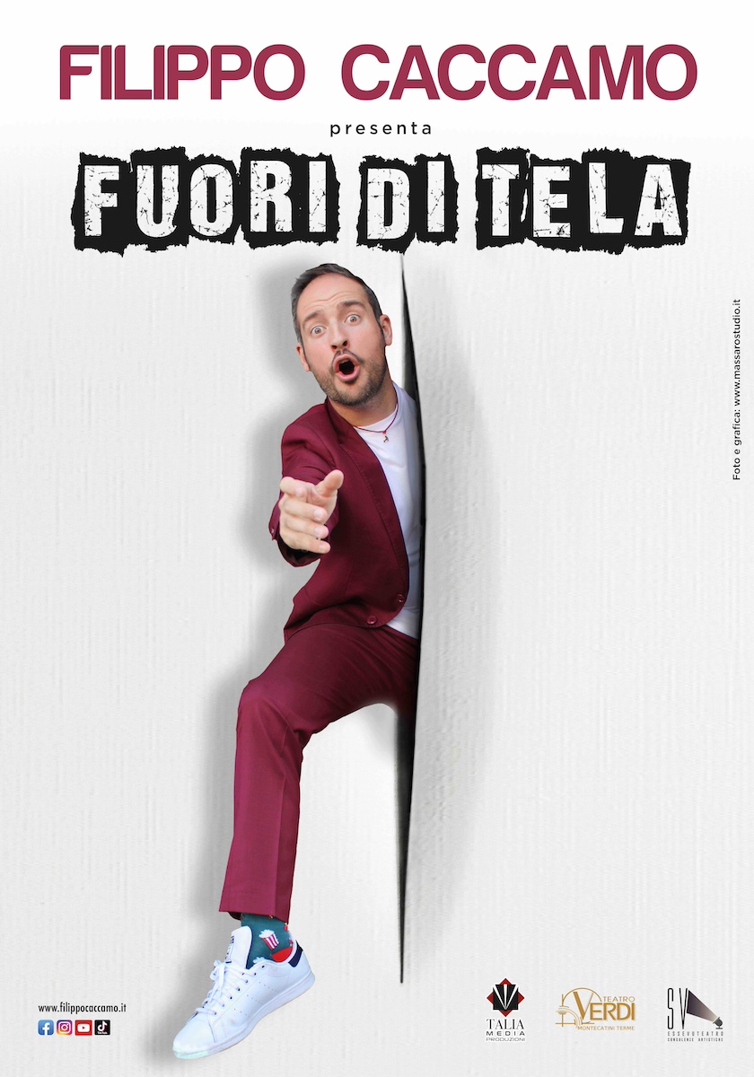 Si intitola Fuori di Tela il nuovo spettacolo di Filippo Caccamo, da lui scritto e interpretato. Prodotto dalla sua agenzia Talia Media in partnership con Teatro Verdi di Montecatini Terme e Essevuteatro di Firenze, il nuovo show trae ispirazione dalla storia dell’arte. Sul palcoscenico Filippo – ex insegnante e laureato proprio in Scienze dei Beni Culturali e Storia e Critica dell’Arte – proporrà una carrellata di grandi artisti che, rompendo gli schemi, hanno segnato i punti di svolta della storia dell’arte.