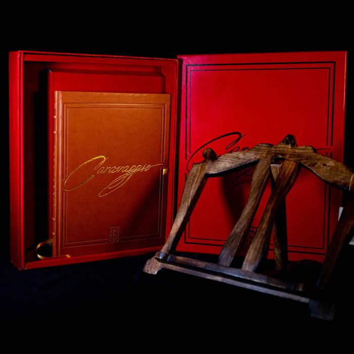 Milo Manara’s Caravaggio – Exclusive Edition è accompagnata da un elegante leggio di legno che permette l’esposizione delle tavole di grande formato come vere e proprie opere d’arte. Le sorprese della nuova edizione sono numerose. Dalla copertina termovirante con stampa in foil oro, laccetti dorati di chiusura e fettuccia-segnalibro dorata, alla postfazione inedita ed esclusiva della storica dell’arte Rossella Vodret. Il volume contiene inoltre una rubrica-tour virtuale. Questa illustra la collocazione dei quadri raffigurati nella graphic novel e una cover gallery con le copertine dei volumi precedenti.