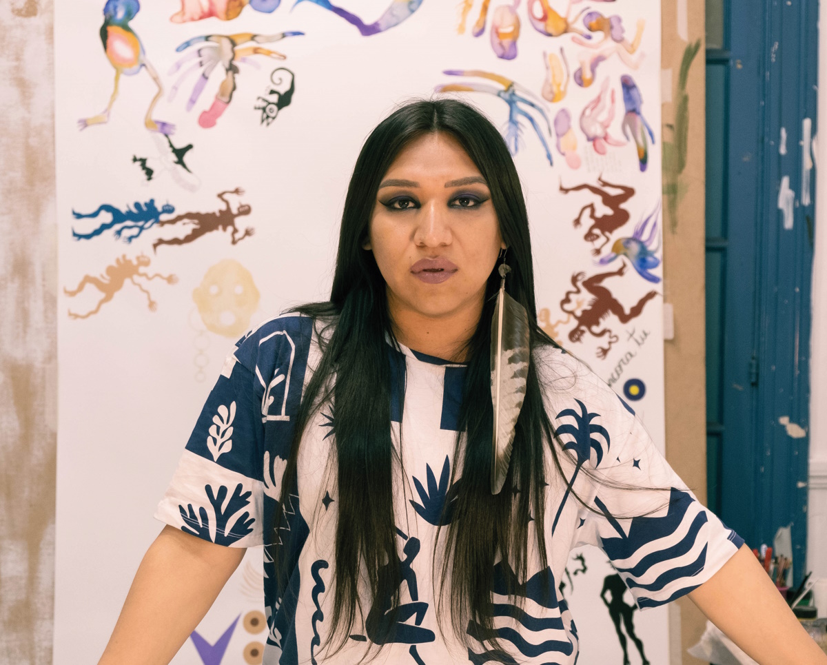 L’esposizione è un omaggio dell’artista alle sue radici indigene e all’identità queer. Prendendo il nome dalla città natale in Argentina, Guaymallén intreccia vita personale, cultura e visione artistica in un racconto ricco di bellezza, ribellione e crudeltà. Nata a Mendoza, ai piedi delle Ande, La Chola Poblete (1989) è infatti un’artista multidisciplinare, performer e attivista LGBTQ+. Nel suo lavoro, riflette sulle conseguenze del colonialismo e della supremazia bianca in Argentina, affrontando i temi della stereotipizzazione e dell’esotizzazione delle popolazioni indigene.