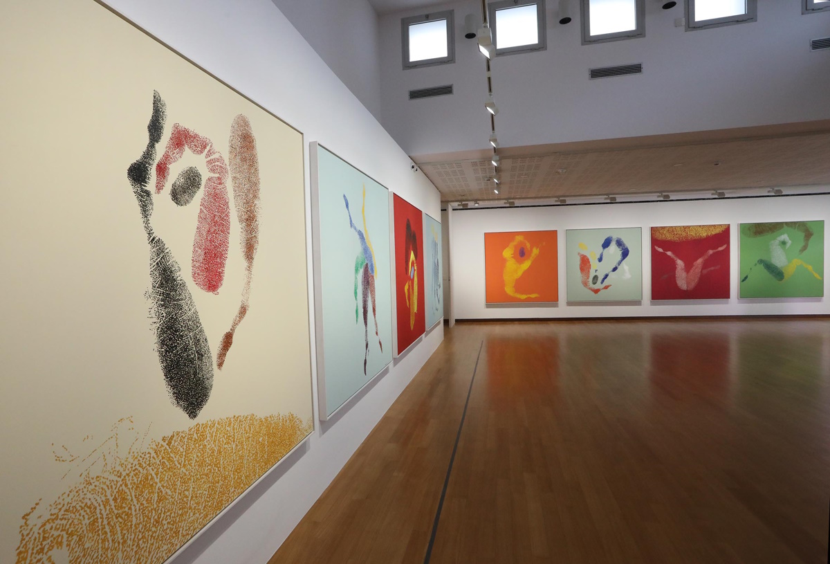 Il cuore della mostra si trova nelle ultime sale, che ospitano la serie Impronte di luce (2022), esposta per la prima volta in Italia. Questi dipinti ad olio su tela si ispirano alle proporzioni del Modulor di Le Corbusier e raffigurano forme umane attraverso ingrandimenti delle mani dell’artista. Infine, l’allestimento si conclude nel giardino della Fondazione, con opere in bronzo come Equivalenze (2016) e Gesti vegetali (1983), che estendono il concetto dell’impronta al paesaggio naturale.