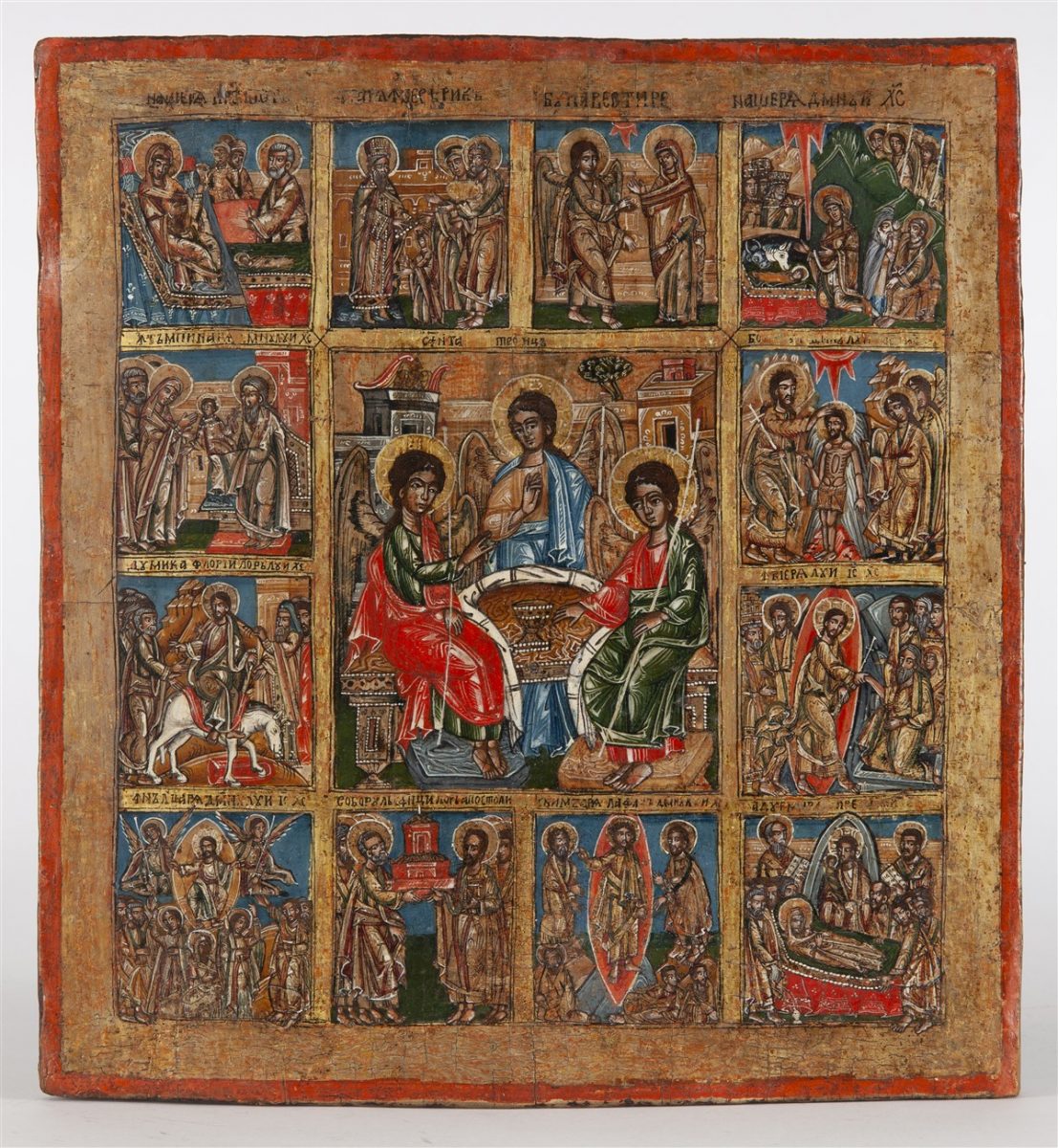 Le opere esposte appartengono ad una cornice temporale piuttosto estesa, fra il XV e il XX secolo, e raffigurano personaggi e scene della vita di Gesù, di Maria e dei Santi. Realizzate con diversi materiali, dalla tempera su tavola alle tecniche ad olio o miste, sono tipicamente arricchite da pregiate coperture metalliche (rize) e arricchite con smalti e pietre preziose.