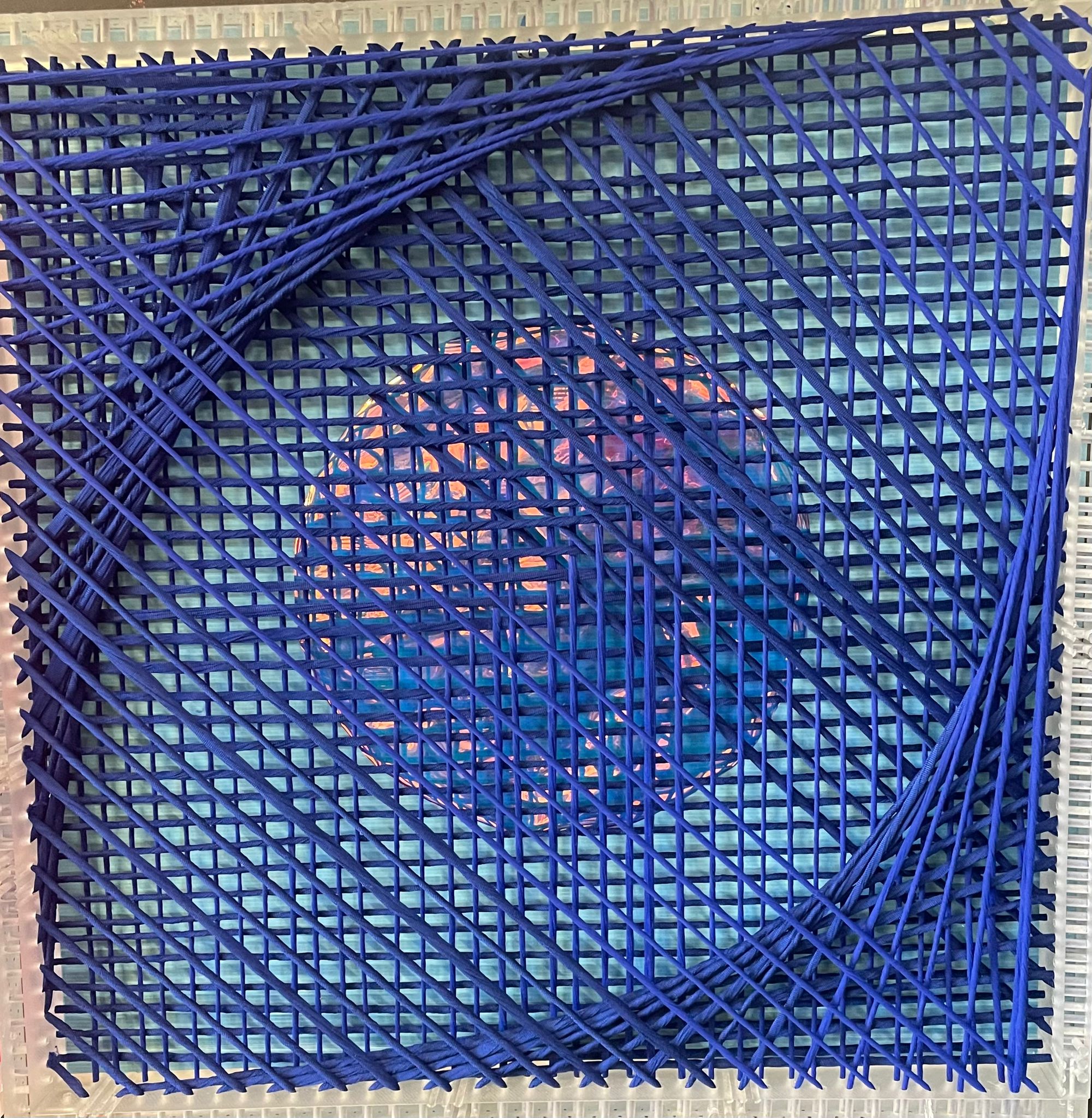 Nel 2010 ha scelto, quindi, di dedicarsi completamente all’arte, usando materiali insoliti – nylon, filati, collant, rocchetti – per dar vita a opere che si muovono tra geometria e matematica. Punti, linee, cerchi e triangoli danzano in 3D, seguendo algoritmi e teorie contemporanee, in un percorso che richiama l’arte cinetica e generativa del Novecento.
