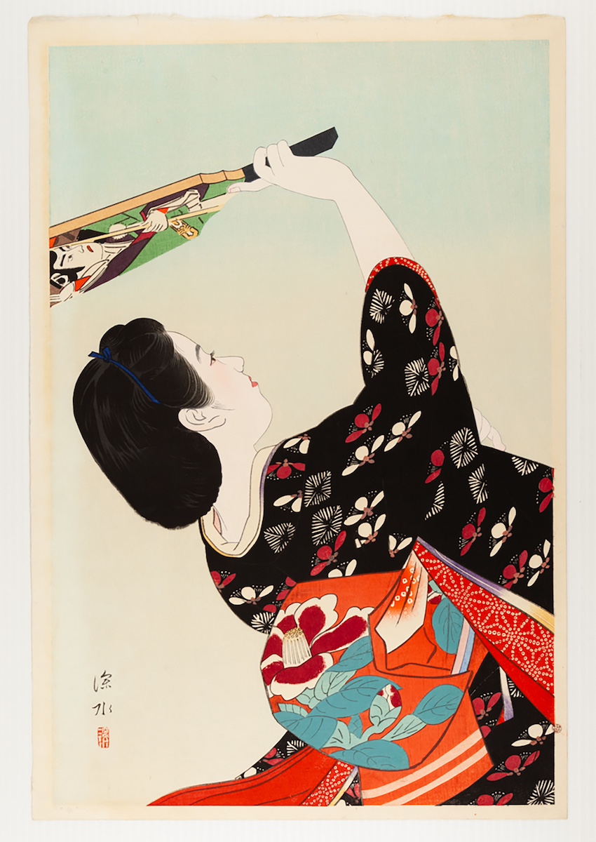 Tra le altre sezioni da non perdere, c’è quella relativa al teatro kabuki: se nell’ukiyo-e i ritratti degli attori erano legati soprattutto alla cartellonistica, negli shinhanga la produzione è slegata dall’attività teatrale. Gli artisti disegnano le interpretazioni più celebri, osannando attori noti nei loro ruoli più iconici. E ancora viaggi, paesaggi innevati e primaverili e la nuova leva dell’illustrazione, che ha goduto del nuovo scisma artistico. Ne è un esempio il lascito di Takehisa Yumeji: i suoi ritratti femminili – che impreziosiscono copertine di libri e spartiti – mostrano tutto il romanticismo dell’arte figurativa. Le illustrazioni di Nakahara Jun’ichi, invece, influenzarono la grafica degli shōjo.