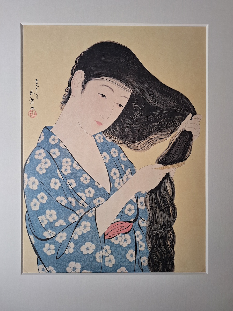 Il cambio di prospettiva di quegli anni è dunque evidente: gli shinhanga – termine coniato dall’editore Shōzaburō Watanabe – mettevano al centro scorci della provincia rurale, i sobborghi cittadini, scene notturne. Non più – come nel caso degli ukiyo-e – località note e personaggi celebri. È l’esaltazione della quotidianità, che trova nella donna la sua massima espressione. I bijinga – i ritratti – mostrano infatti donne comuni che diventano protagoniste, ritratte nella loro quotidianità, mentre si pettinano i capelli o si applicano il trucco.
