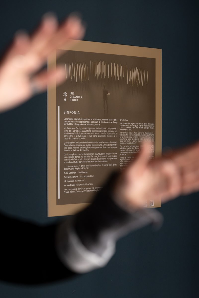 Con un semplice gesto delle mani, infatti, chiunque può trasformarsi in direttore d’orchestra, modulando strumenti a fiato o a corda. Passando dal ritmo sincopato del jazz alla dolcezza classica. Come? Personalizzando quattro brani iconici che hanno segnato un’epoca: The Mooche di Duke Ellington, Rhapsody in Blue di George Gershwin, Charleston di J.P. Johnson e Autumn In New York di Vernon Duke. Sinfonia è un ponte tra passato e presente, unendo lo stile déco alla tecnologia contemporanea.