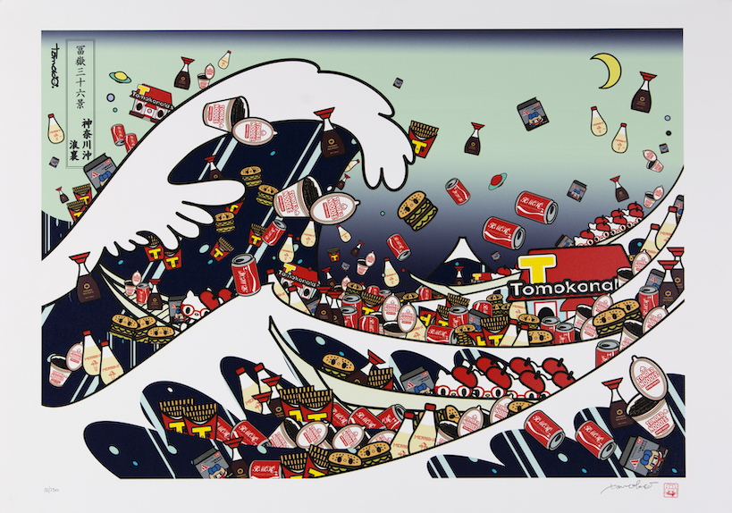 Immagini da Ufficio Stampa / In copertina: Tomoko Nagao, Onda Pop After Hokusai – The great Wave of Kanagawa. Print su carta – Limited edition – 70×50 xm – 2012