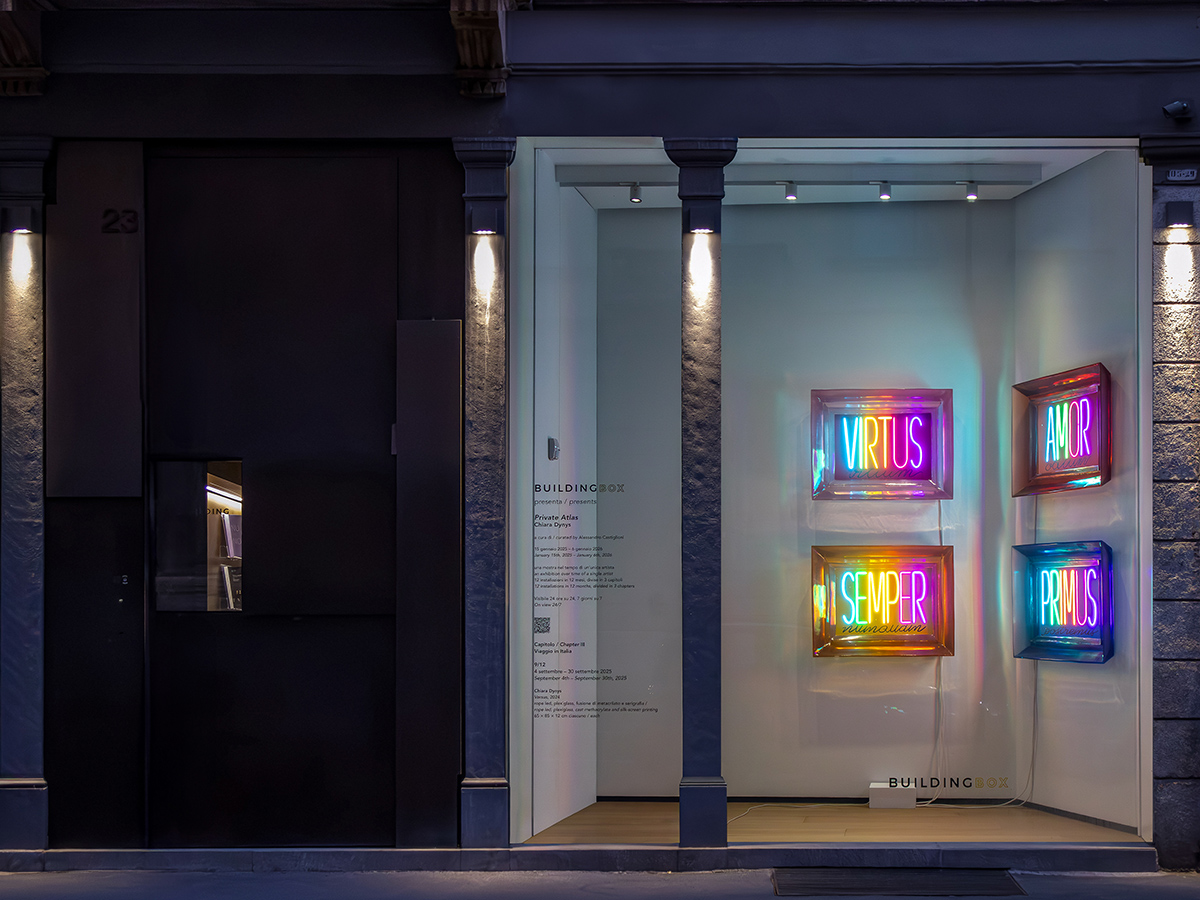 Presso BUILDING BOX a Milano prosegue il progetto espositivo antologico di Chiara Dynys, Private Atlas, curato da Alessandro Castiglioni. Articolata in dodici episodi, la mostra ripercorre 35 anni di ricerca dell’artista attraverso allestimenti site-specific che si susseguono mensilmente nello spazio di via Monte di Pietà 23. Dopo La disseminazione della memoria e Attraversamenti, il terzo capitolo è Viaggio in Italia, ospitato nella galleria dal 4 settembre.
