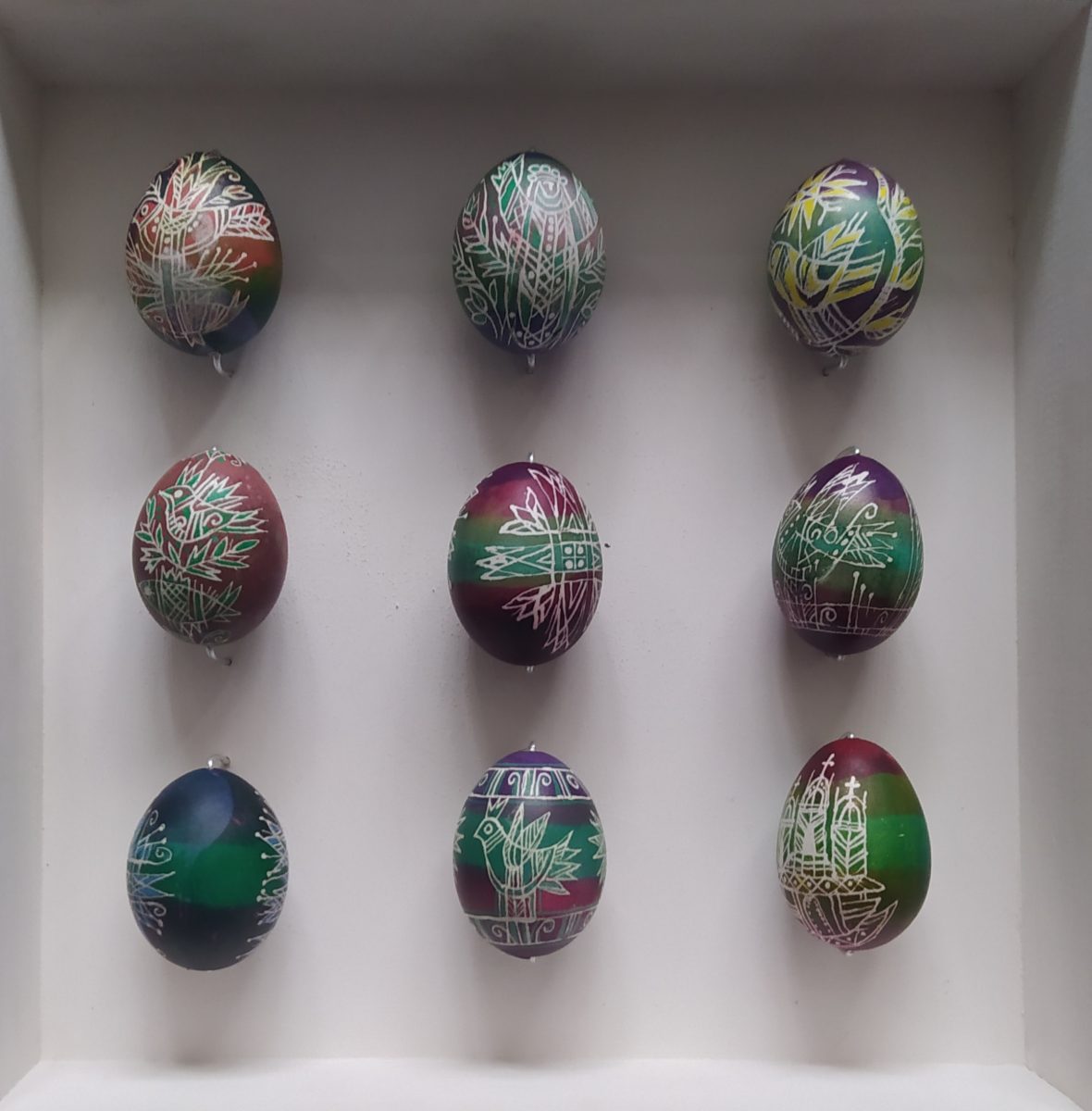 L’esposizione, organizzata dall’Associazione Culturale OBERIG e curata da Ala Zarvanytska, raccoglie 74 pysanky d’autore e 18 opere pittoriche firmate da quattro tra i più noti artisti ucraini: Larysa Iskiv, Volodymyr Lutsyk, Lilia Babiak e Ala Zarvanytska. Insieme, questi lavori tracciano un percorso nell’evoluzione dell’antica tecnica del pysankarstvo – la decorazione a cera dei gusci d’uovo – dalle origini precristiane fino alle interpretazioni artistiche più attuali.