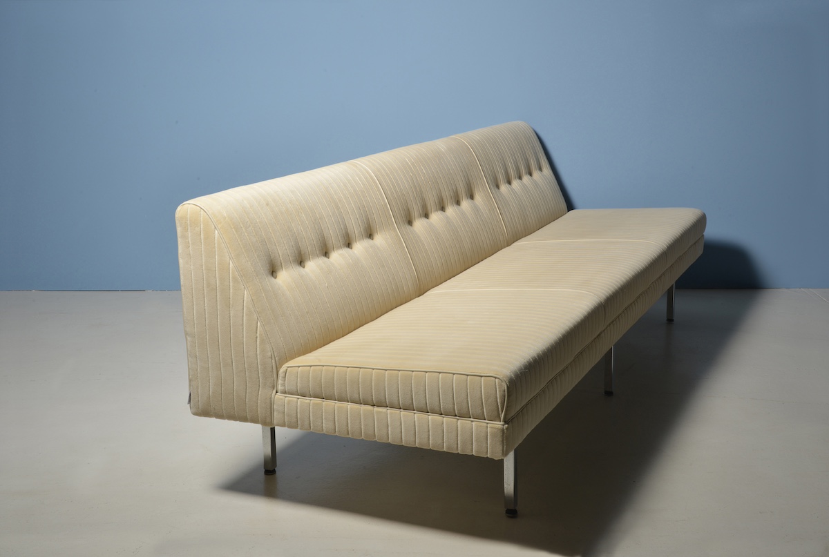 In mostra spicca una chaise longue disegnata da Gustavo Pulitzer, maestro dell’architettura navale del Novecento, rivestita con tessuti Dedar: un oggetto che diventa simbolo della fusione tra arte, industria e navigazione.