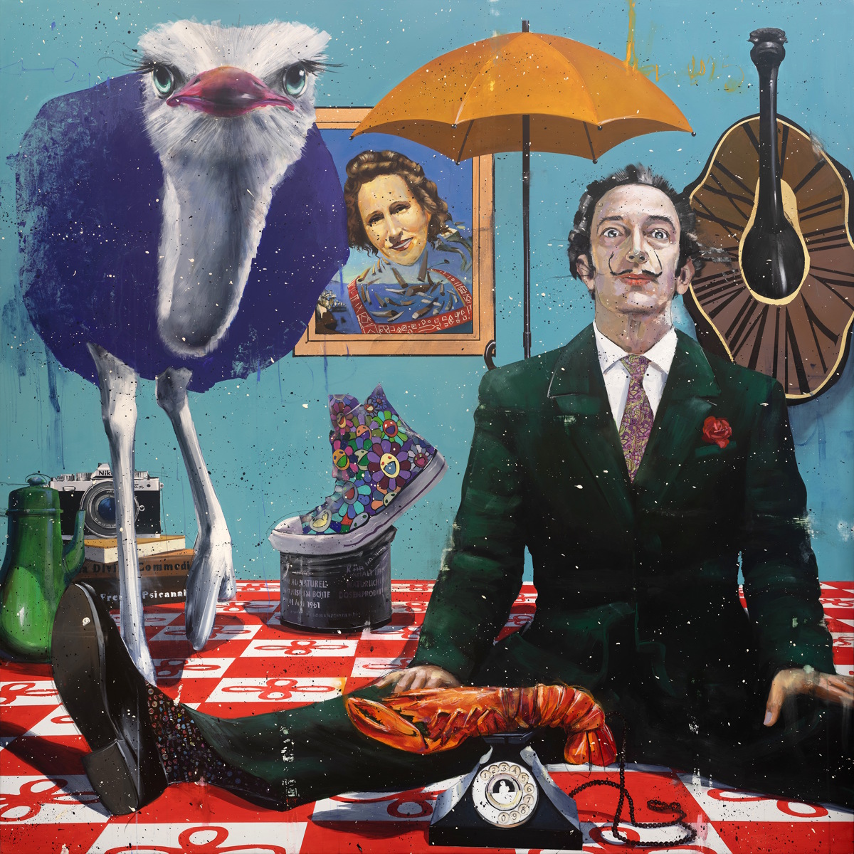 La mostra prosegue idealmente il percorso avviato nell’estate 2025 a Porto Cervo, quando Accardi – in collaborazione con Dalí Universe – ha presentato i primi “mash-up” tra le sue opere e le sculture monumentali del genio spagnolo. A Soho questo dialogo prende forma in una narrazione più ampia, culminando nel grande trittico Rendez-Vous (180×540 cm), simbolo dell’intera esposizione. Qui le icone accardiane incontrano le figure daliniane in un teatro sospeso tra sogno e leggerezza, restituendo la forza visionaria di un immaginario che sfugge alle categorie.