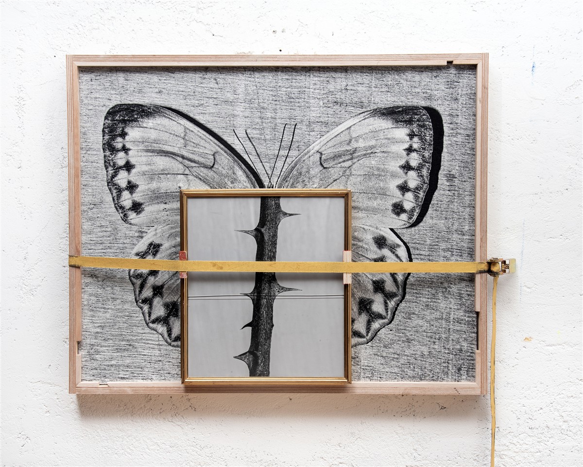 La fotografia di Jacopo Benassi, da sempre legata ai contesti underground, arriva in fiera in forma di assemblaggi in cui stampa fine art, cornici d’artista, vetro, legno, acrilico e argilla modellabile si saldano in un unico corpo. Opere come The golden-armored butterfly (2026) ed È tornato Nerone! (2026) proseguono una ricerca che trasforma il flash in strumento scultoreo, capace di ritagliare figure e situazioni con un taglio crudo e diretto.