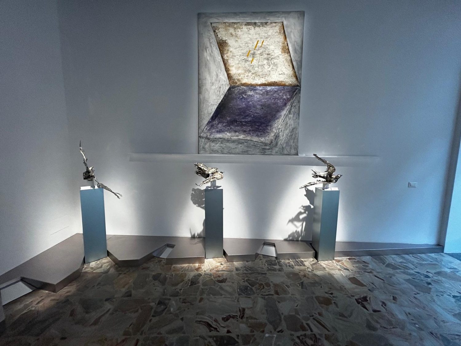 La rassegna riunisce opere in cui colombe, angeli, piogge e anime diventano figure attraverso cui l’artista interroga il rapporto tra visibile e invisibile, tra finito e infinito. Il cielo, inteso come dimensione dell’altrove e del sacro, è il punto di partenza e di ritorno di un’indagine poetica che attraversa l’intera ricerca di Collina.