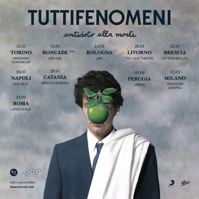 Il 12 gennaio 2023 da Torino parte Antidoto Alla Morte, il primo vero tour di Tutti Fenomeni nei migliori club italiani, i luoghi per eccellenza dove la sua musica trova la dimensione più naturale. Un tour a lungo rimandato a causa della pandemia che sarà finalmente l’occasione per ascoltare live le canzoni di Privilegio raro, il secondo disco uscito a maggio per 42 Records/Epic Records Italy, insieme a quelle di Merce Funebre, il suo album d’esordio.