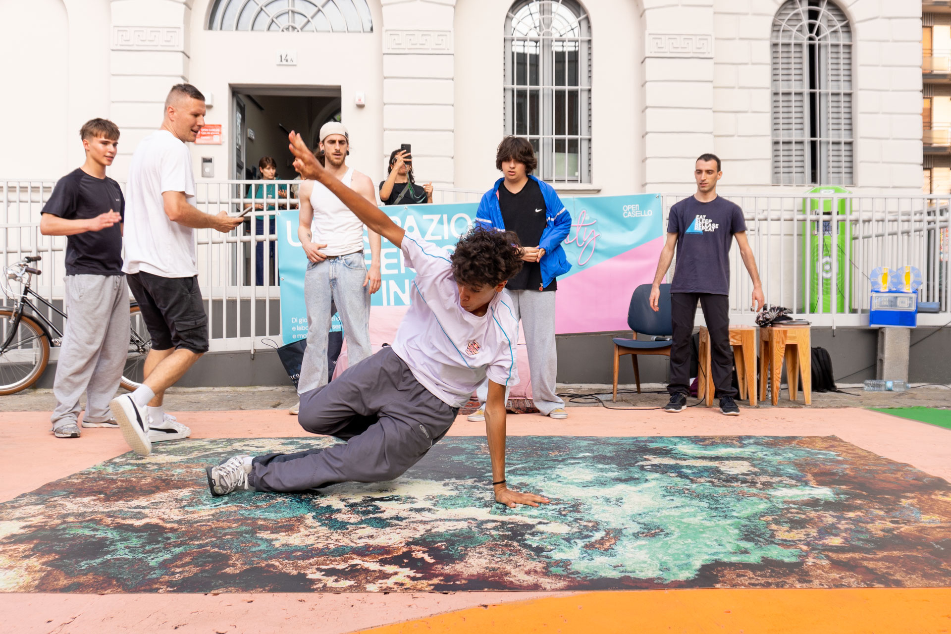 Il 12 giugno, un laboratorio a cielo aperto ha dato vita alla colorazione e ridefinizione dell’area, coinvolgendo studenti del Politecnico di Milano (Polimi DESIS Lab) sotto la guida di AMAT. Nuovi arredi come cinque fioriere, due panchine, due tavoli da pic-nic, un tavolo da ping-pong e tre rastrelliere integrano l’estetica. In continuità con le attività interne di Open Casello. L’iniziativa, sostenuta dagli assessorati di Gaia Romani (Quartieri) e Martina Riva (Politiche Giovanili), riflette un processo partecipativo con giovani under 30.