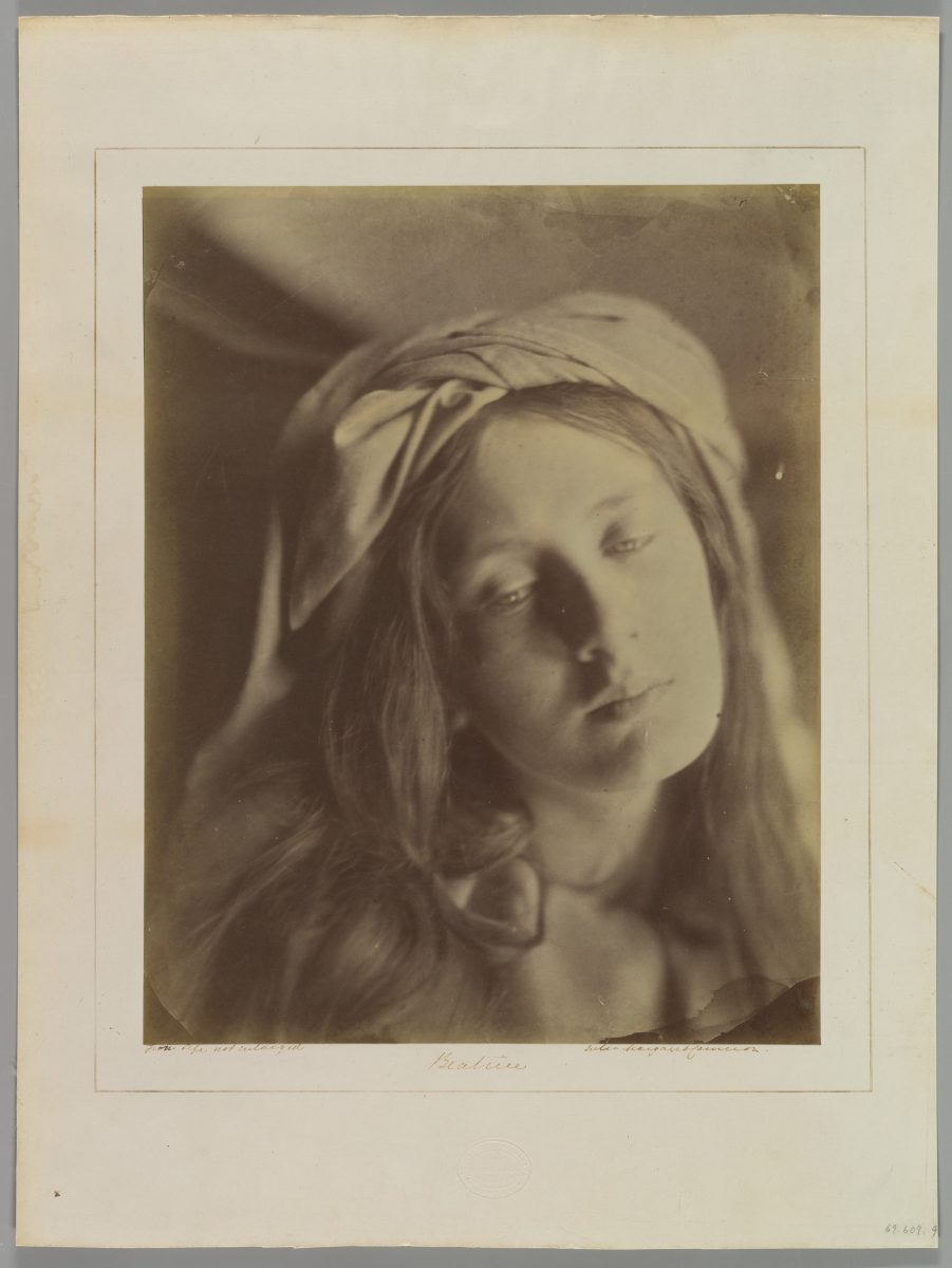 In fotografia, invece, Julia Margaret Cameron, ha catturato la giovane Beatrice Cenci (1866) in una stampa all’albumina, con May Prinsep come modella. Parte di una serie dedicata alla nobildonna, l’immagine esalta l’aura malinconica della protagonista, contribuendo alla sua mitologia visiva di Beatrice come simbolo di sofferenza universale.