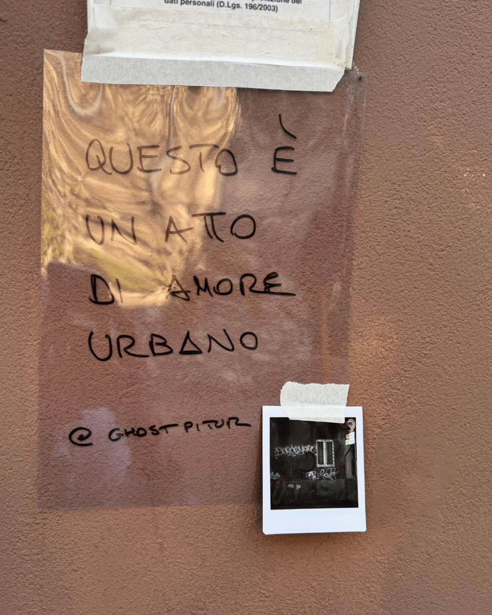 Ghost Pitùr è questo: un’azione concreta, un atto poetico senza retorica, un gesto semplice che parla di cura, senso civico e attenzione per il paesaggio urbano. Non aggiunge colore: lo toglie. E in quel togliere, crea una forma inedita di arte civile.