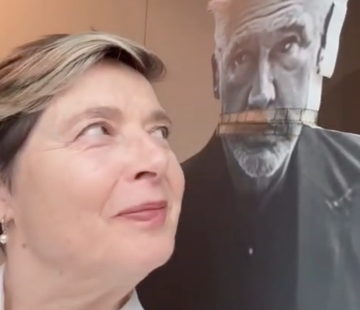 Isabella Rossellini a Roma per l’omaggio a David Lynch a Palazzo Rhinoceros: emozione e sorpresa davanti all’installazione di Raffaele Curi.