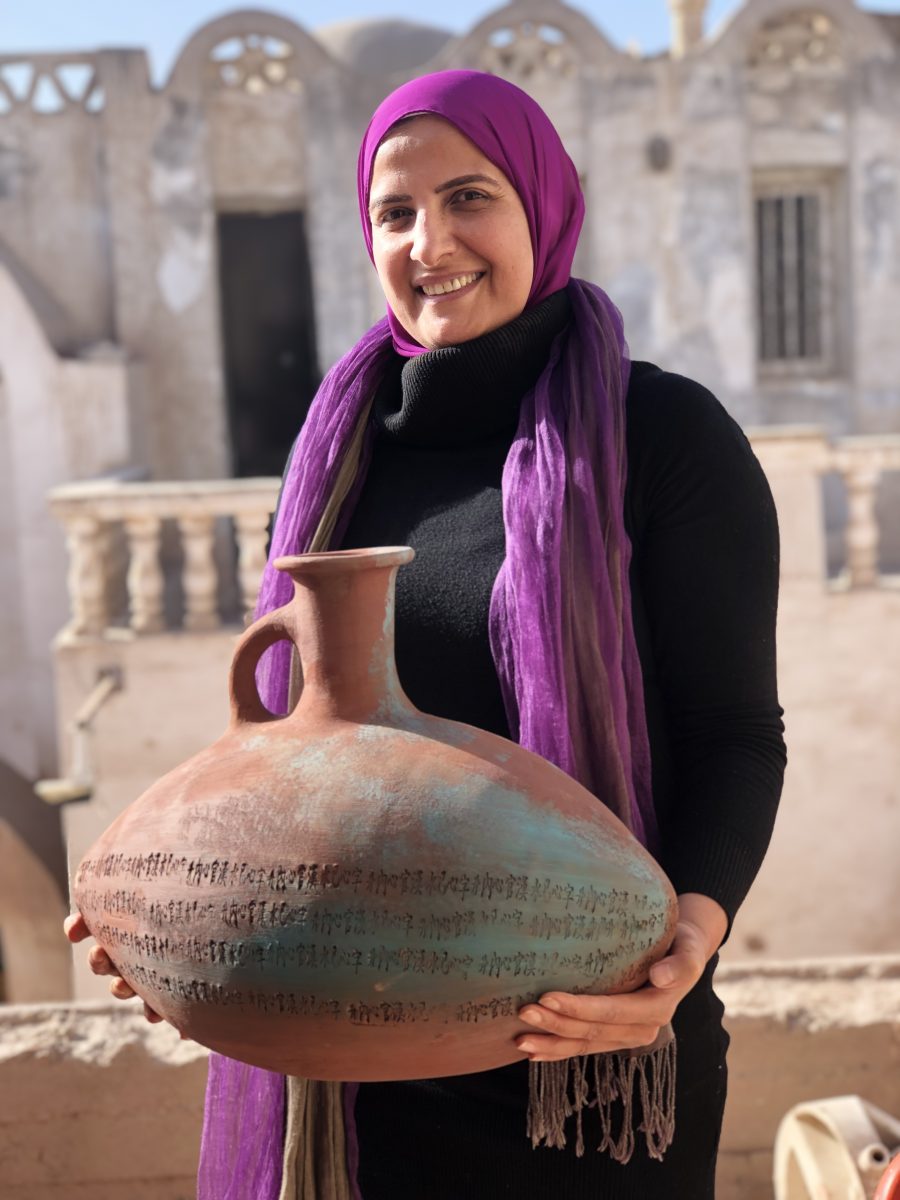 Nata al Cairo, è artista visiva, critica d’arte e direttrice della Bab Selim Gallery presso il Museo d’Arte Moderna dell’Opera del Cairo. La sua ricerca, ispirata all’eredità dell’antico Egitto, rielabora le tradizioni ceramiche pre-dinastiche e le antiche scritture per interrogare identità e memoria nel linguaggio dell’arte contemporanea.