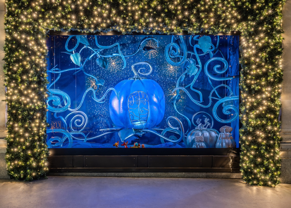 L’intera facciata è avvolta da uno spettacolo di luci ispirato al Castello della Bella Addormentata di Disneyland Paris, realizzato su misura con un modello tridimensionale alto undici metri: la più grande installazione scenografica realizzata da Selfridges negli ultimi cinquant’anni. Ogni sera, dalle 17:00 alle 21:00, il pubblico può assistere a un light show musicale in cui la polvere di fata di Trilli accende stelle, navi volanti e carrozze incantate, sulle note della colonna sonora di Cenerentola.