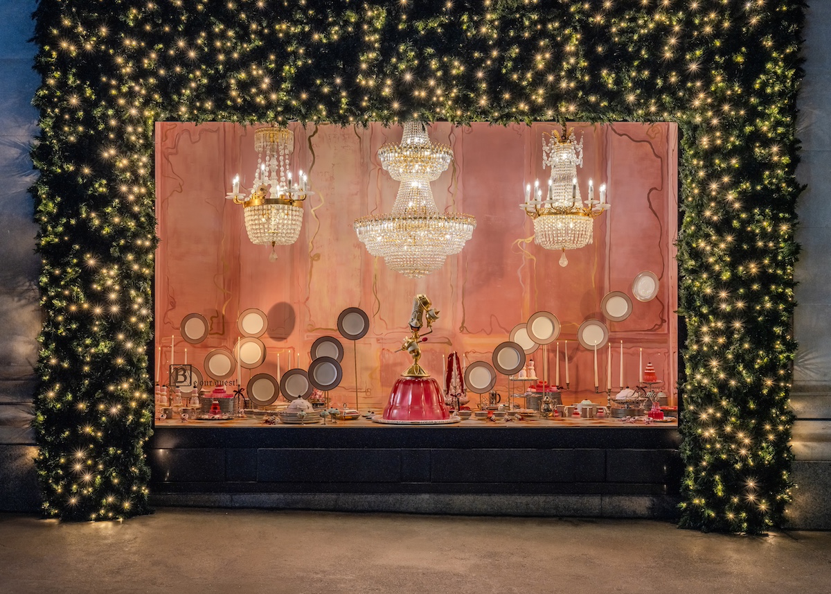 Le vetrine di Orchard Street aggiungono un tocco artistico contemporaneo: due concept artist hanno reinterpretato i classici Disney come se fossero opere d’arte figurativa, trasformando illustrazioni e bozzetti in sculture sospese tra sogno e realtà.