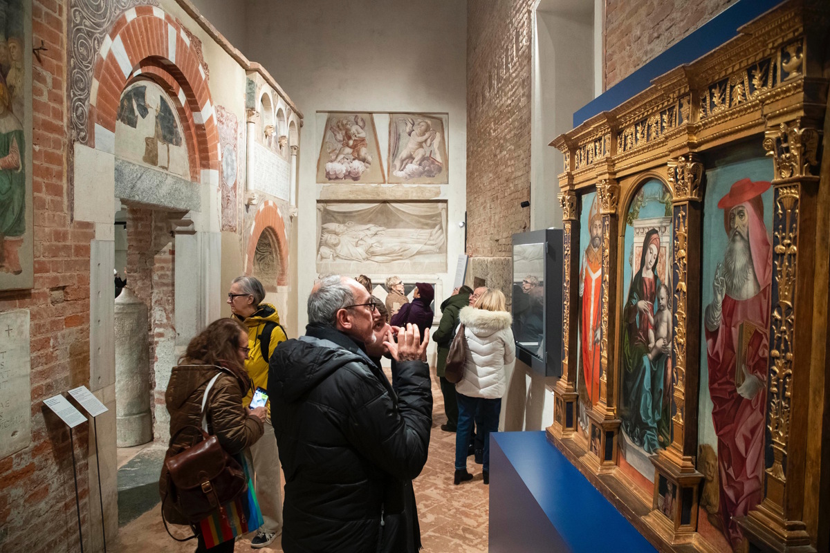 Si prosegue con il sacello di San Vittore in Ciel d’oro, che ospita l’antica e celebre raffigurazione musiva del Santo in dalmatica. E, infine, il Capitolino, ex sede del percorso museale, ora integrato in una visione più ampia e coerente. Si aggiungono quindi pezzi di straordinario pregio come l’Urna degli Innocenti, arredi lignei, frammenti tessili rarissimi oltre alla scodella attribuita al Santo, esposta per la prima volta.