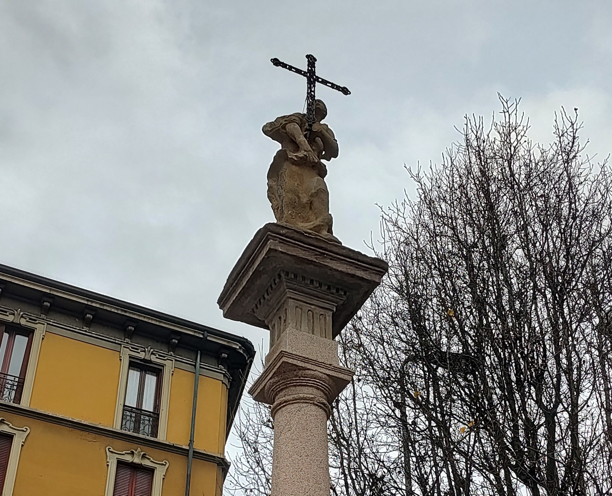 La Colonna di Santa Maria Maddalena fa parte del gruppo delle cosiddette “crocette votive”, erette per volontà di San Carlo Borromeo come ringraziamento per la fine della devastante pestilenza che colpì Milano tra il 1576 e il 1577. Dal punto di vista architettonico, l’opera si sviluppa su un basamento in granito rosa di Baveno con rivestimenti laterali in mattoni a vista, su cui si innestano elementi lapidei decorati. La colonna, anch’essa in granito rosa, culmina con la statua di Santa Maria Maddalena in ceppo gentile, attraversata da un crocifisso in ferro battuto.