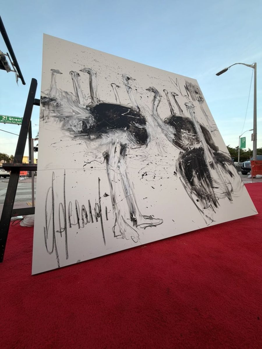 Ti abbiamo visto impegnato in una performance emozionante, una tela con i tuoi struzzi tirata su in pochi minuti, dipingendo anche con le mani.